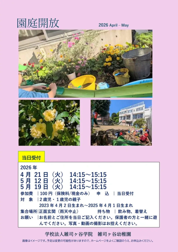 | お願い | お名前とご住所を当日ご記入ください。保護者の方と一緒に遊んでください。写真・動画の撮影はお控えください。 |